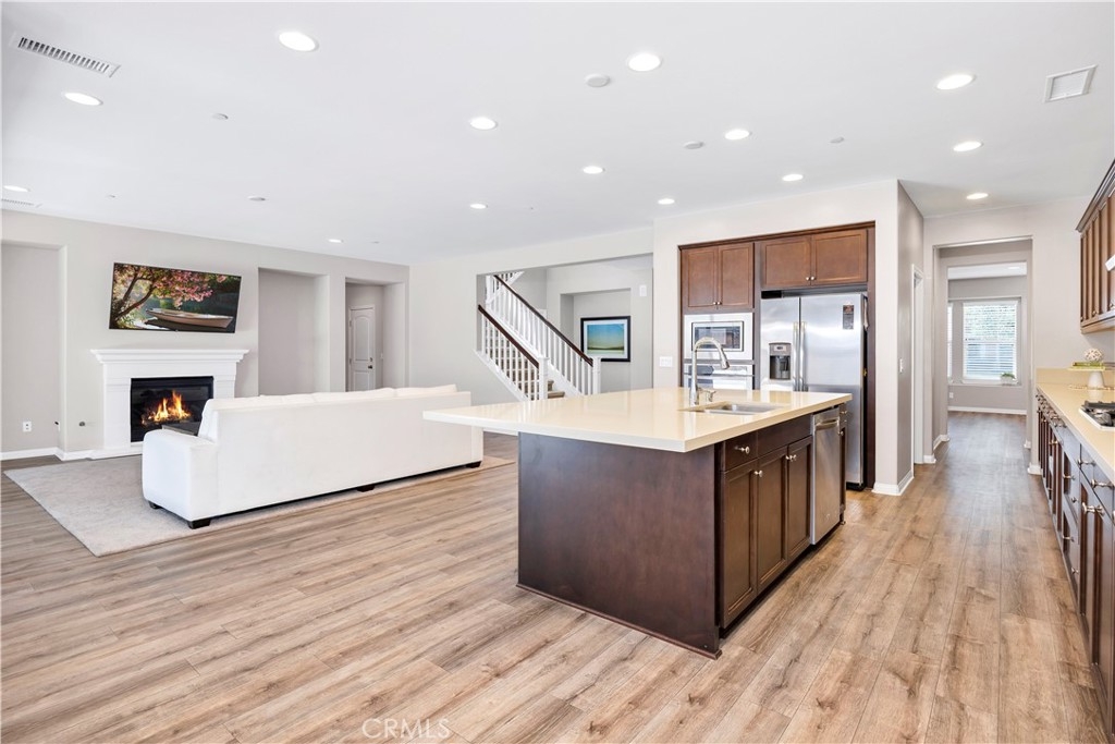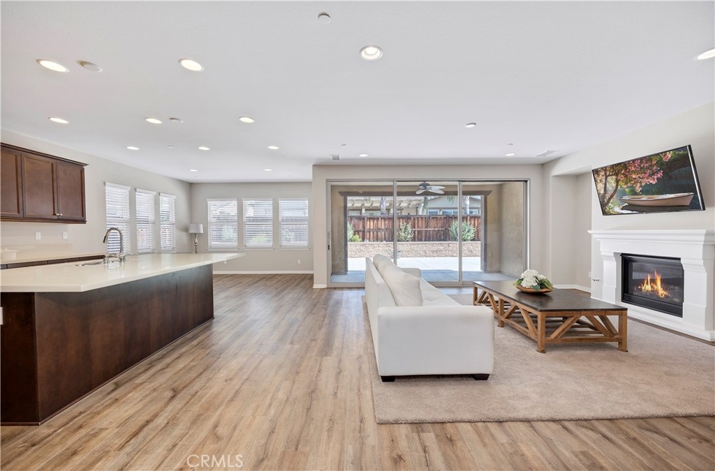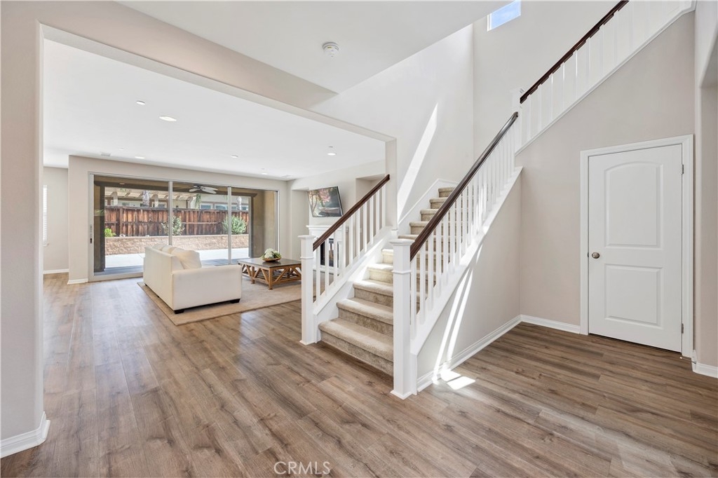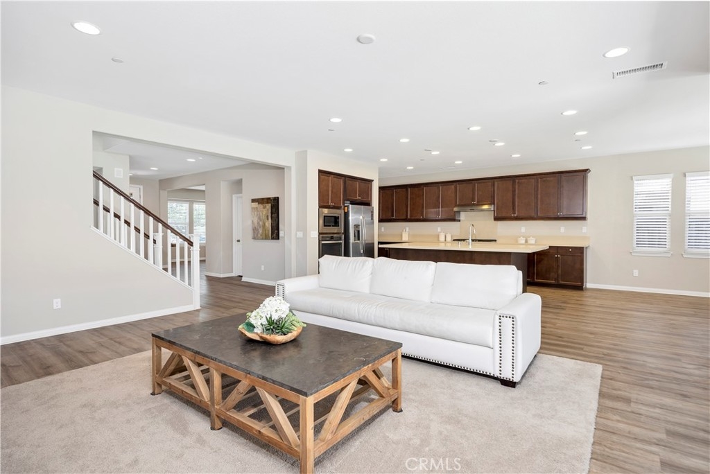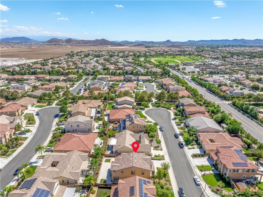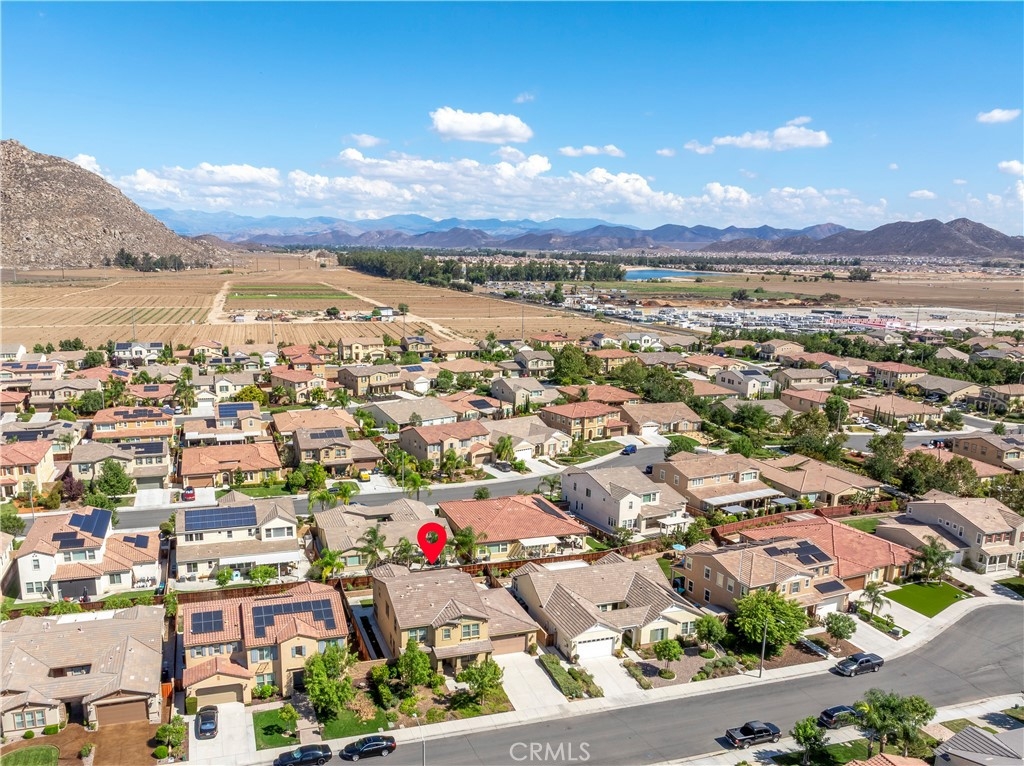 This gorgeous Heritage Lake home is in pristine condition and ready for its new owners! Built in 2017, this massive 3,408 Sq. Ft. home is virtually untouched, only lived in part-time and feels almost brand new! The layout of this home is perfect for multi-generational living. Inside you’ll find high ceilings, luxury vinyl flooring, and a spacious family room with a beautiful fireplace and white mantel. The chef’s kitchen features a massive, oversized island, stainless steel appliances, walk-in pantry, and butler’s area. A dramatic 3-panel sliding glass door opens to the California room, creating seamless indoor-outdoor living. The backyard is low-maintenance with a covered patio, vegetable garden, and raised planter beds. Downstairs includes a private guest suite with en-suite bathroom. Upstairs offers a loft with mountain views, two spacious bedrooms, and a Master suite with an oversized walk-in closet, dual vanities, soaking tub, and separate shower that makes you feel like you’re in a spa its so big! Additional highlights include under-stair storage and a 3-car tandem garage. This property is located in the Master Planned Community of Heritage Lake. Amenities of Heritage Lake include: several large Parks and Sport Fields that have Playgrounds, Baseball, Basketball, Soccer, Pickleball and Tennis Courts. Heritage Lake has a 25-Acre lake exclusively for residents, featuring catch-and-release fishing, paddleboat rentals, and scenic walking trails that wind around the lake and throughout the community. Heritage Lake offers a clubhouse that hosts a variety of events and activities for residents throughout the year. There are two community pools and a splash pad designed for young children. This home is conveniently located within walking distance to Mesa View Elementary and Ethan A. Chase Middle School. Heritage Lake is just minutes from the 215 Freeway, as well as nearby restaurants, shopping centers, and all the wonderful amenities Menifee has to offer. Surrounded by stunning mountain views, Heritage Lake provides a serene and picturesque setting for residents to enjoy year-round!