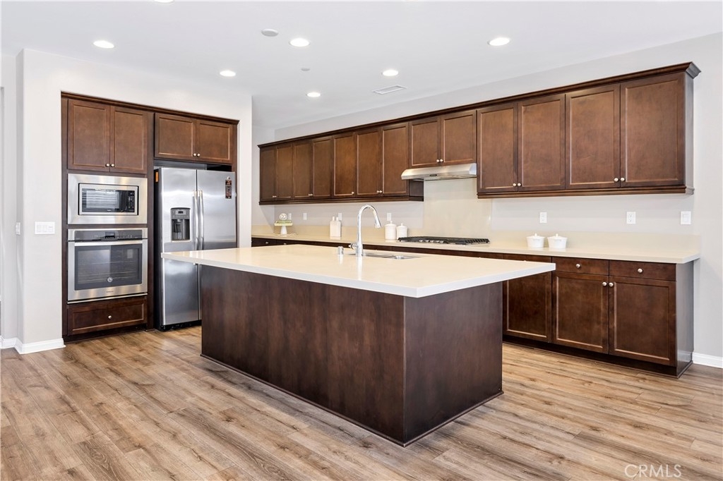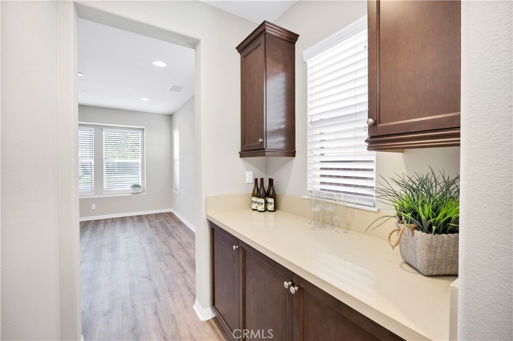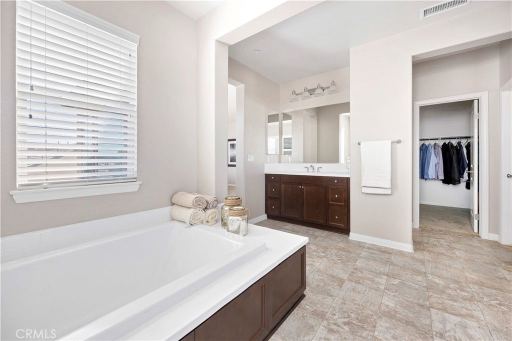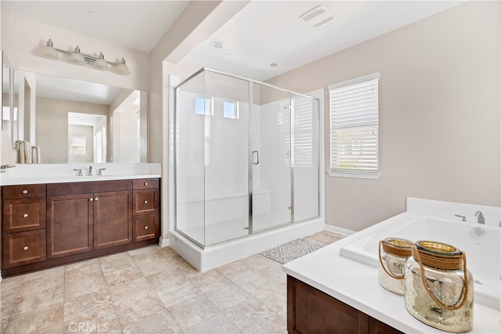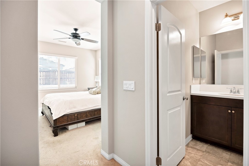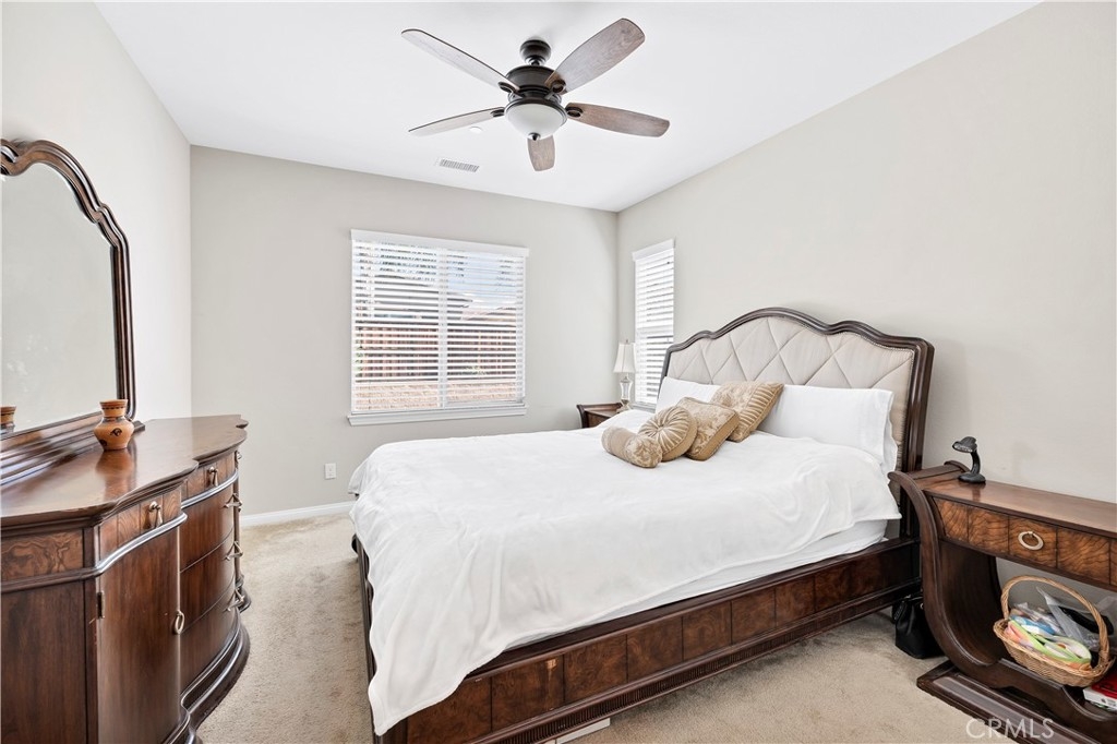 This gorgeous Heritage Lake home is in pristine condition and ready for its new owners! Built in 2017, this massive 3,408 Sq. Ft. home is virtually untouched, only lived in part-time and feels almost brand new! The layout of this home is perfect for multi-generational living. Inside you’ll find high ceilings, luxury vinyl flooring, and a spacious family room with a beautiful fireplace and white mantel. The chef’s kitchen features a massive, oversized island, stainless steel appliances, walk-in pantry, and butler’s area. A dramatic 3-panel sliding glass door opens to the California room, creating seamless indoor-outdoor living. The backyard is low-maintenance with a covered patio, vegetable garden, and raised planter beds. Downstairs includes a private guest suite with en-suite bathroom. Upstairs offers a loft with mountain views, two spacious bedrooms, and a Master suite with an oversized walk-in closet, dual vanities, soaking tub, and separate shower that makes you feel like you’re in a spa its so big! Additional highlights include under-stair storage and a 3-car tandem garage. This property is located in the Master Planned Community of Heritage Lake. Amenities of Heritage Lake include: several large Parks and Sport Fields that have Playgrounds, Baseball, Basketball, Soccer, Pickleball and Tennis Courts. Heritage Lake has a 25-Acre lake exclusively for residents, featuring catch-and-release fishing, paddleboat rentals, and scenic walking trails that wind around the lake and throughout the community. Heritage Lake offers a clubhouse that hosts a variety of events and activities for residents throughout the year. There are two community pools and a splash pad designed for young children. This home is conveniently located within walking distance to Mesa View Elementary and Ethan A. Chase Middle School. Heritage Lake is just minutes from the 215 Freeway, as well as nearby restaurants, shopping centers, and all the wonderful amenities Menifee has to offer. Surrounded by stunning mountain views, Heritage Lake provides a serene and picturesque setting for residents to enjoy year-round!
