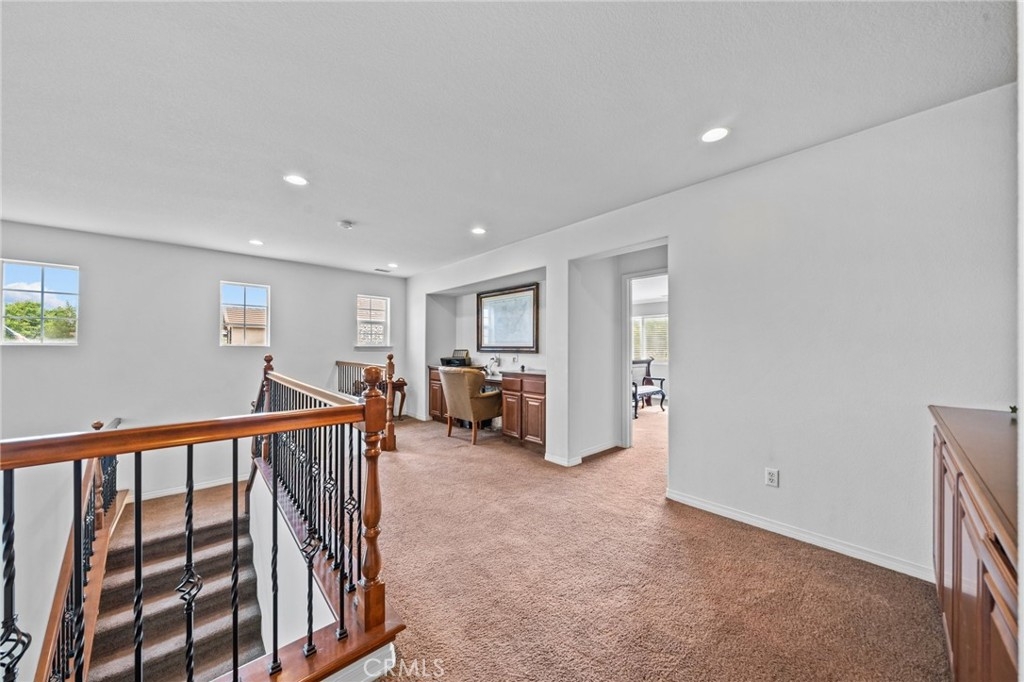 Upstairs, a built-in desk and abundant cabinetry in the hallway provide extra functionality and storage. The luxurious primary suite is a true retreat, complete with his and hers walk-in closets, a soaking tub, a separate shower, and dual sinks. Down the hall, you will find two more bedrooms, a third full bathroom with dual sinks, and a well-appointed laundry room.