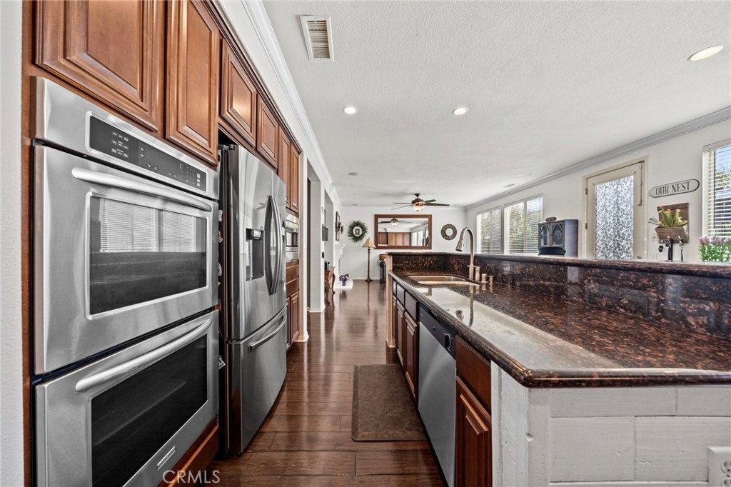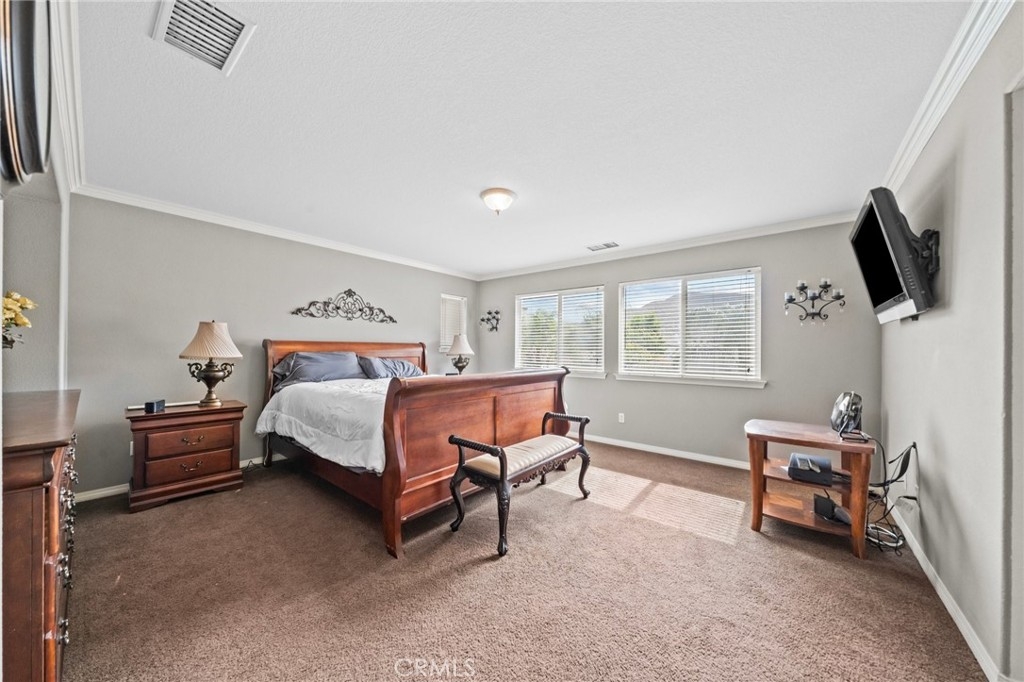 The Heritage Lake Community offers an array of amenities, including two junior Olympic pools, splash pads, catch-and-release fishing, paddle boating on the lake, a clubhouse, and four main parks with sports courts. The home is conveniently located near shopping, schools, and the 215 freeway, ensuring easy access to all your needs.