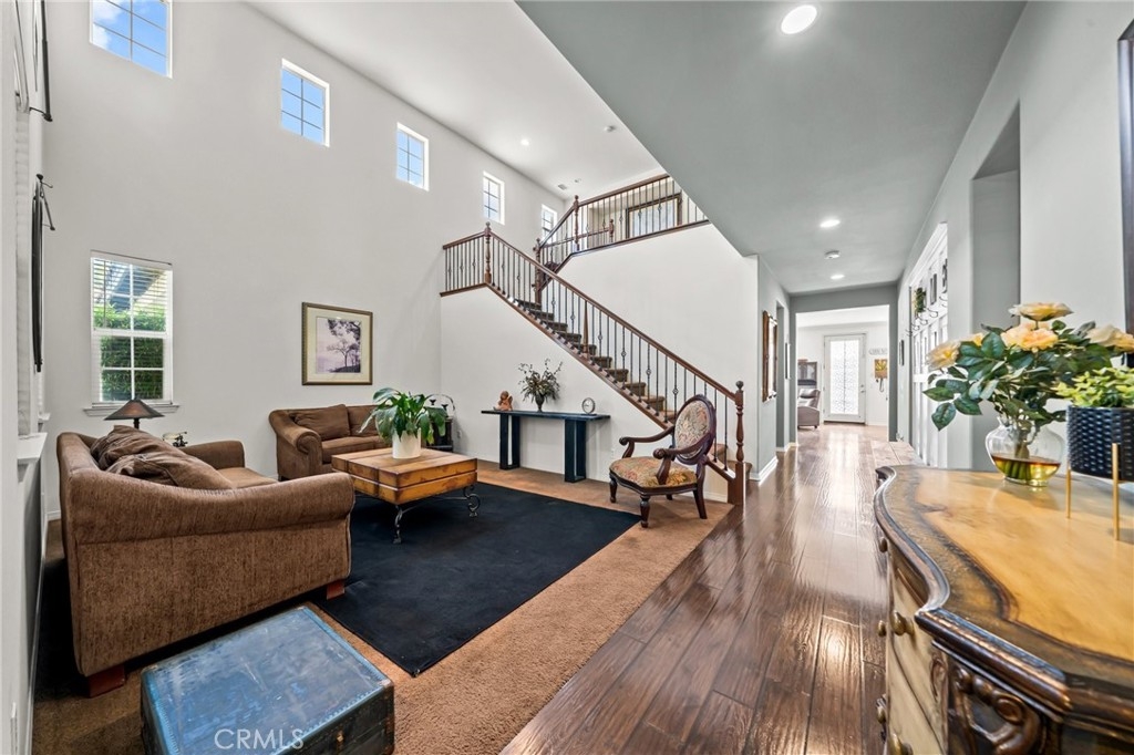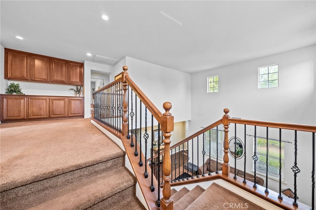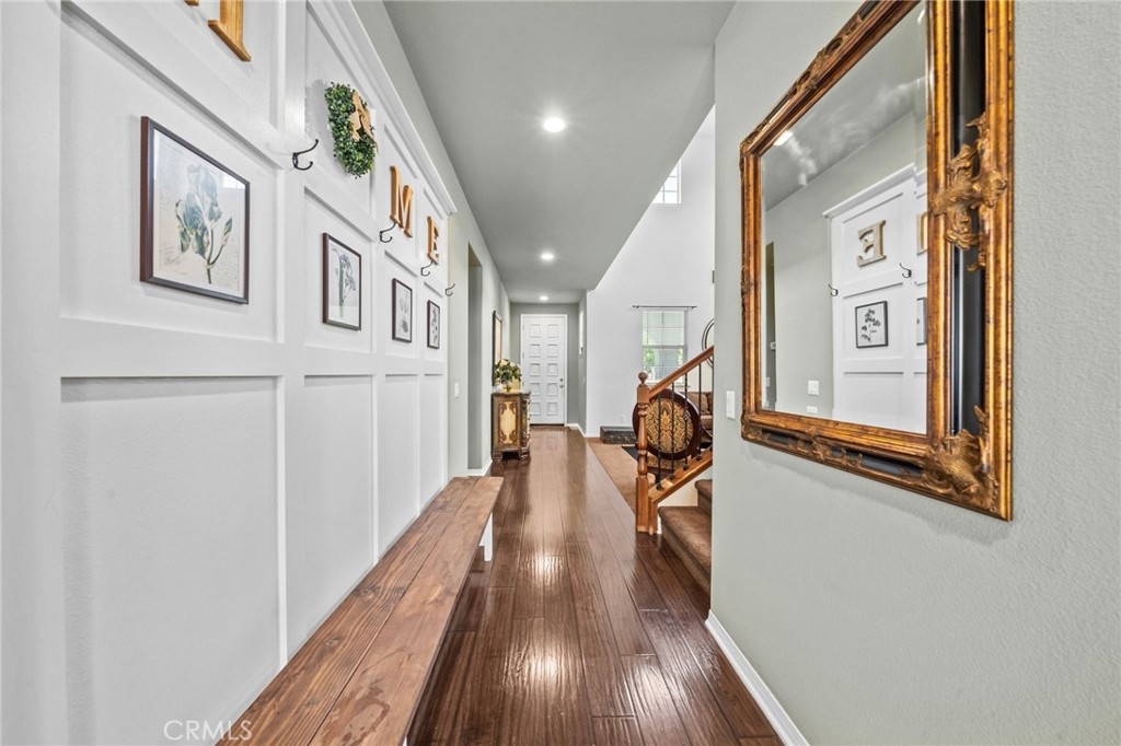 The downstairs area also includes a convenient hall with a coat closet and a deep storage closet with custom built-in shelves. The 3-car tandem garage offers ample space for vehicles and additional storage.