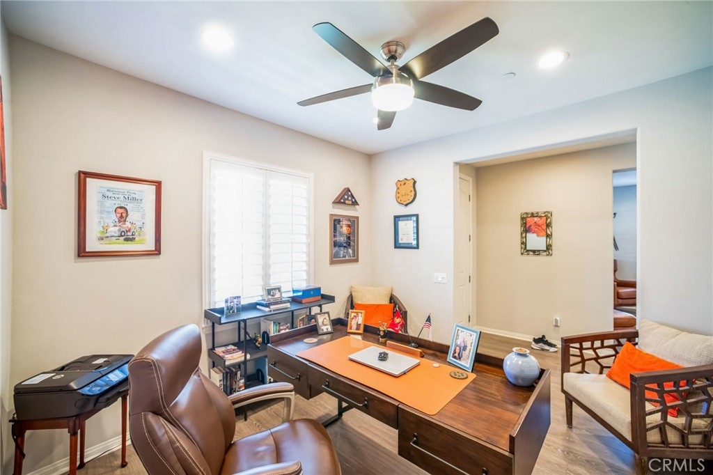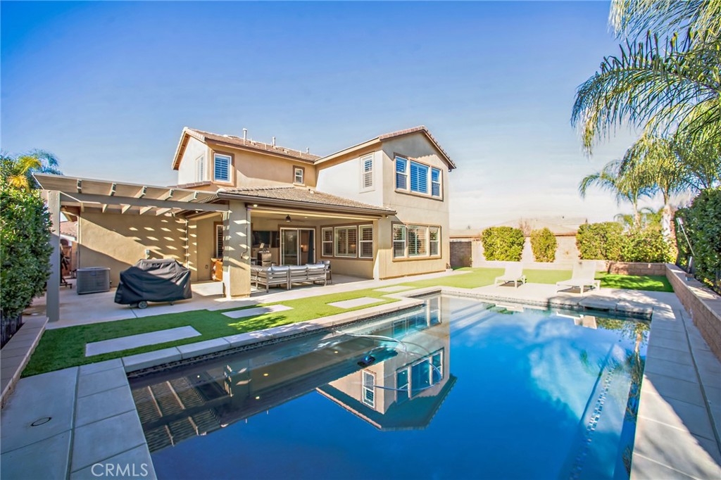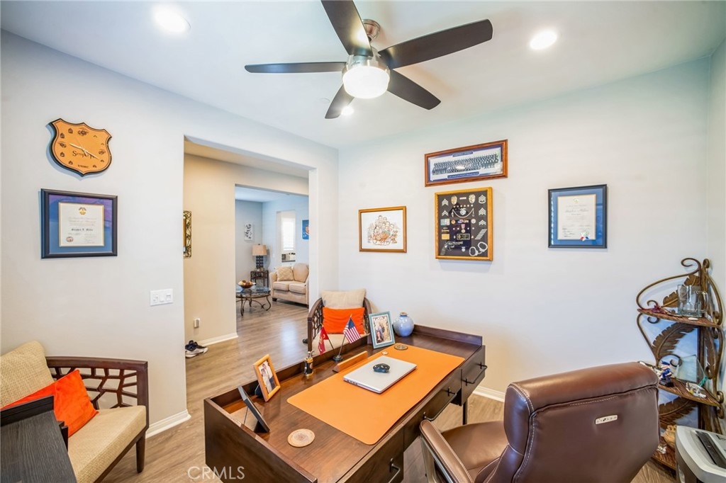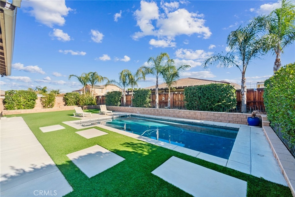 Discover this stunning pool home in the desirable Heritage Lake community of Menifee! Built in 2017, this beautifully designed property offers 4 bedrooms, 3 bathrooms, and 2,981 sq. ft. of living space on a spacious 8,276 sq. ft. corner lot. (Can easily be converted to a 6 bedroom) The flexible floor plan includes a downstairs bedroom and bathroom, a dedicated office, and a formal dining/living area. Upstairs, a loft with an adjacent tech area adds even more versatility, with the option to convert both spaces into a 5th and 6th bedroom.