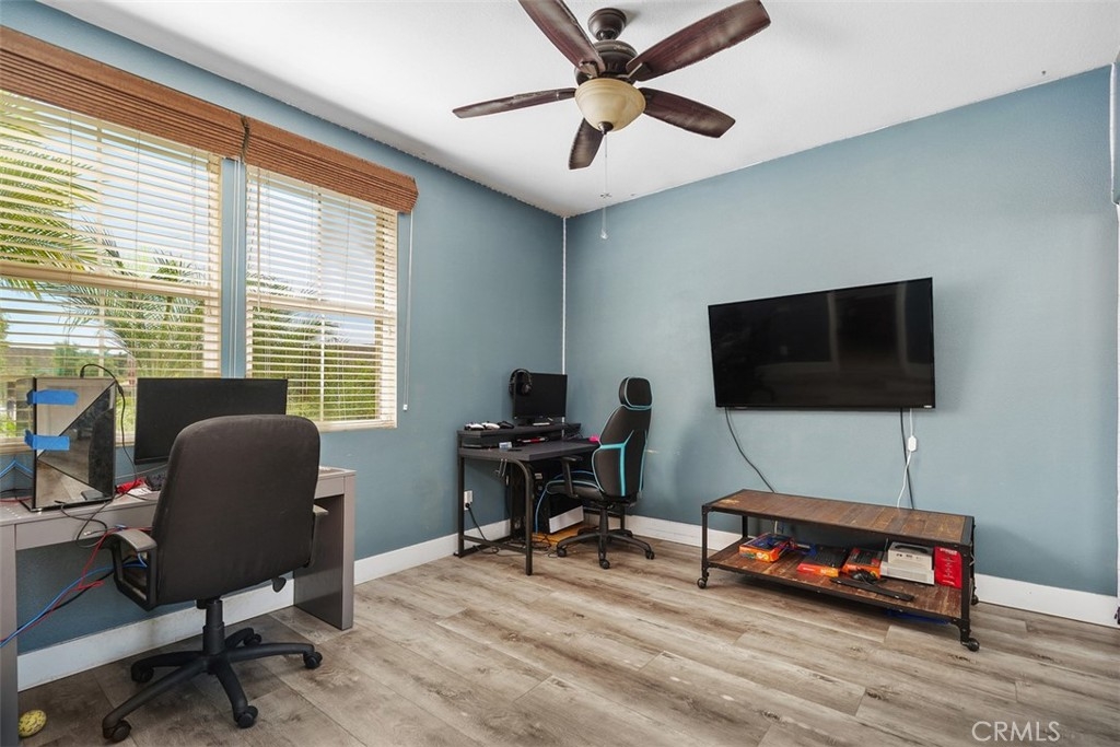 With two family rooms and a den that can be used as an office or formal dining area, this home is both spacious and functional. There’s a dedicated laundry room and abundant storage throughout. Additional features include smart home technology with a Ring camera, security wiring, remote-controlled ceiling fans, and elegant 4-inch baseboards. The outdoor space includes two covered patios—one in the side courtyard, accessible from both the kitchen and the main hallway, and a second in the backyard, which also has a firepit, a low-maintenance yard, and a gated dog run.