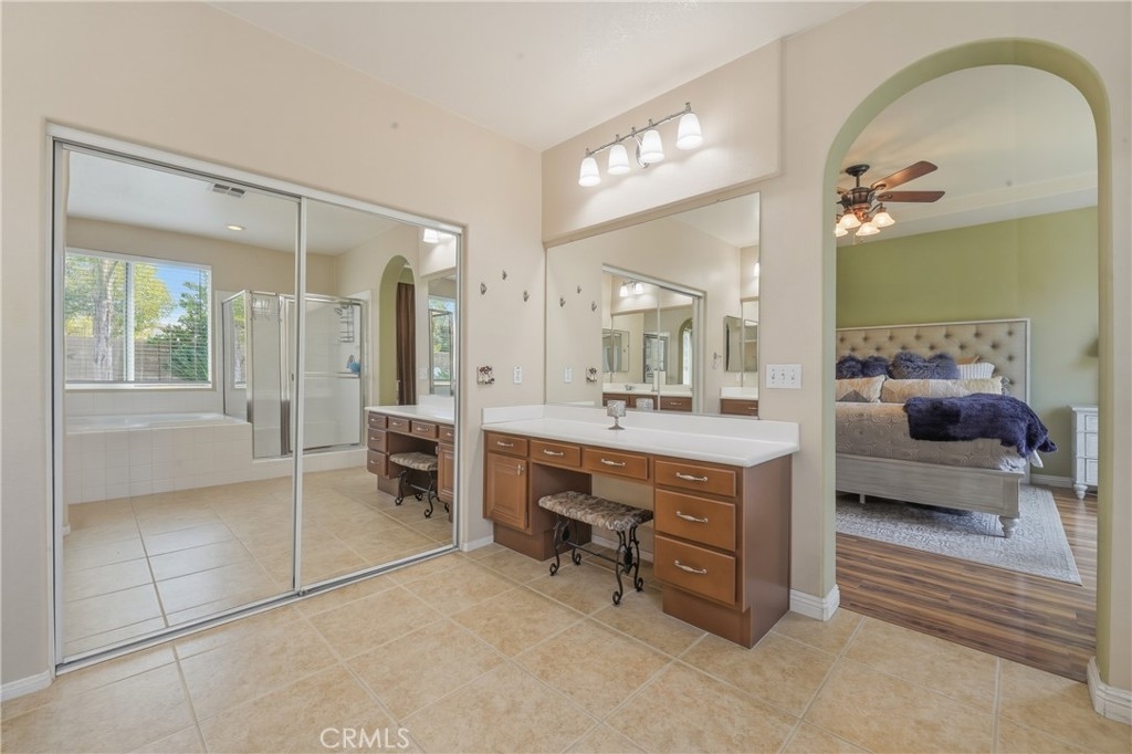 Soaring 9-foot ceilings, dramatic interior archways, and a private atrium courtyard create a fresh, modern ambiance with architectural flair. The luxurious primary suite is privately positioned in its own wing, delivering a true retreat experience. Indulge in the spa-like bathroom complete with a deep soaking tub, dual vanities, a glamorous makeup station, a spacious walk-in shower, and an oversized walk-in closet designed to impress.