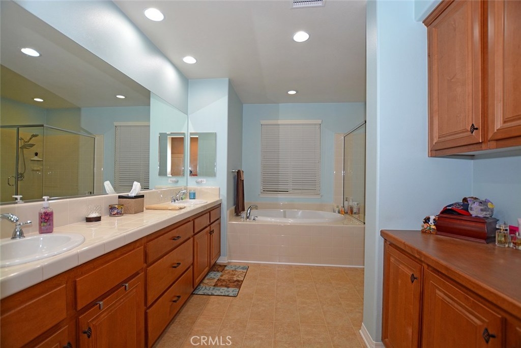 LOOK NO MORE... Everything you could wish for in a home is waiting for you here. This beautiful one story is located on a cul-de-sac in the sought-after Heritage Lake community, with a pool, lake and so much more! An open floor plan, fire place in the family room, big kitchen with a huge center island, granite counter tops and two needed ovens for the holidays to come to name just a few great features. The entry wine room can be transformed into a dinning room or whatever you'd desire. Private master bedroom is conveniently located on the opposite side of the other three bedrooms. There is a large office space with built-in desks great for home office or children doing homework. Entertainers dream backyard offers an amazing mosaic pool and spa, alumawood patio cover with installed fans and lights. Enough room to build a casita or tennis court. 3 car tandem garage with shelves and a work bench. You do not want to miss this opportunity!