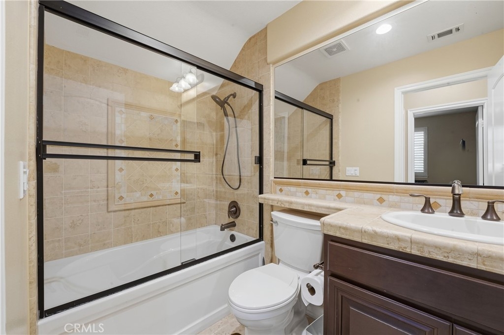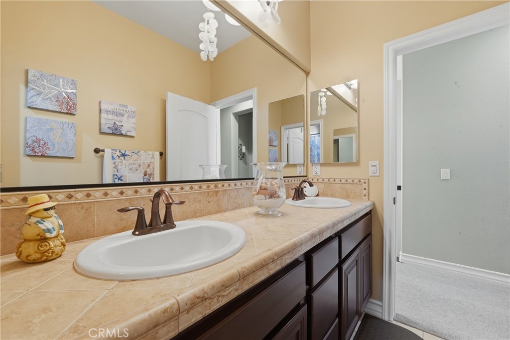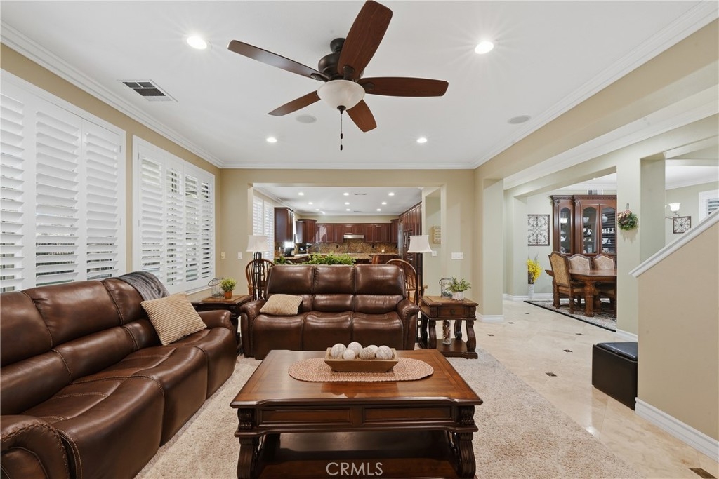 Rare and highly desirable *TWO BEDROOMS LOCATED DOWSTAIRS* set the tone for this exceptional home in the sought-after Heritage Lake community. Spanning 2,833 sq. ft., this beautifully upgraded residence offers 5 bedrooms and 3 bathrooms, perfectly suited for refined living, multi-generational needs, or elevated guest accommodations. From the moment you enter, you’ll notice custom flooring, elegant custom shutters, upgraded baseboards, crown molding, and thoughtfully updated bathrooms throughout. The luxurious primary suite is a private retreat, featuring updated countertops, a Jacuzzi soaking tub, a walk-in shower, and generous closet space. Designed to impress, the chef-inspired kitchen showcases a large center island with dual sinks, granite countertops, double ovens, microwave, five-burner gas cooktop, built-in refrigerator, dishwasher, and extensive cabinetry—ideal for both entertaining and everyday living. The backyard offers a serene, private setting with no rear neighbors, creating the perfect backdrop for outdoor dining, gatherings, or quiet evenings. Completing the home are a 3-car garage with epoxy flooring and overhead storage, along with a well-appointed laundry room with built-in cabinetry. Notable upgrades include new carpet, new gas range, microwave and dishwasher, new toilets and water valves, a new water heater with regulator, replaced HVAC and heating system, and a leaf-guard gutter system. Living in Heritage Lake means enjoying resort-style amenities including two pools, splash park, catch-and-release lake, scenic trails, sports fields, tennis courts, and more—all conveniently located near shopping, schools, and freeway access. An impressive blend of style, comfort, and functionality—this is Heritage Lake living at its finest.