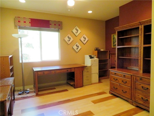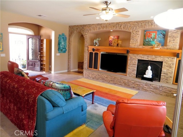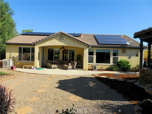 Welcome to this unique home at 29301 Lake Hills Drive. Menifee, CA 92585, a beautifully maintained single-story home offering comfort and style. Set on a generous 9,583-square-foot lot, 2,196-square-foot of living space and was built in 2005.This home features three spacious bedrooms plus a bonus room that can serve as a fourth bedroom or home gym. The open floor plan boasts high ceilings, recessed lighting, large windows, and a charming center courtyard that fills the home with natural light. The kitchen is a chef’s dream with a granite center island, upgraded stainless steel appliances including a double oven, microwave, refrigerator, and a walk-in pantry. The open family room includes a cozy fireplace and expansive views of the backyard through large windows. The home also features a low-maintenance front yard, offering curb appeal without the hassle. This home offers a private retreat, perfectly blending comfort with nature. Situated next to a scenic pathway, you can enjoy peaceful walks just steps from your door and walking distance to the serene lake. The spacious master bedroom is a true sanctuary, featuring a large walk-in closet, a separate jetted soaking tub, and a luxurious glass-enclosed steam shower. Two additional bedrooms offer ample natural light with large windows overlooking the street. The home also includes an inside laundry room, a three-car garage with a water softener system and paid solar panels. The essential appliances like the refrigerator, stove, microwave, washer, and dryer—all staying with the home for your convenience. Step outside to an entertainer’s dream backyard featuring a covered California room-style patio, a big water fountain, a cozy gazebo, and a stone-built barbecue perfect for gatherings. The yard offers fruit trees, grapevines, wooden garden boxes, and a low-maintenance full sprinkler and drip irrigation system. This home has home surge protection, fireguard protection breakers to protect the home circuits, heating and air conditioning is provided by 5-ton heat pump. Expanded solar capacity to include additional panels and 2 Tesla batteries. Limit of 5% yearly growth of energy bills starting under $200/month. Beyond this property, enjoy the resort-style amenities of this beautiful Heritage Lake Community, including 25 acres of lake with paddle boats and catch-and-release fishing, two junior Olympic swimming pools, a clubhouse, and waterfront walking, jogging, and parks.