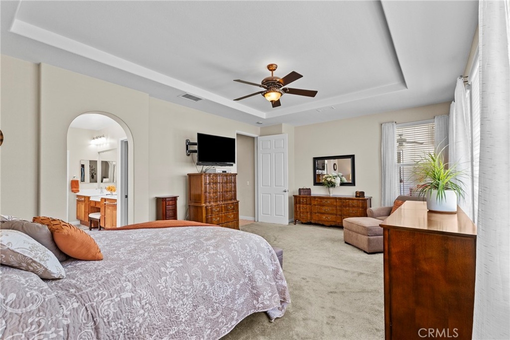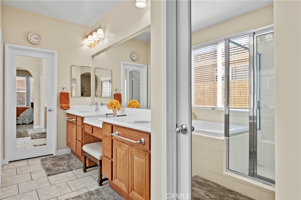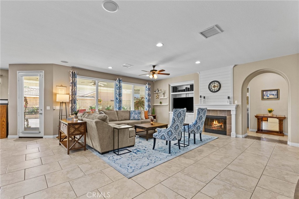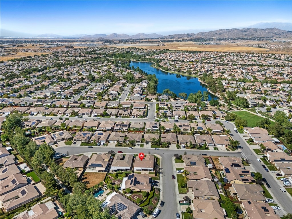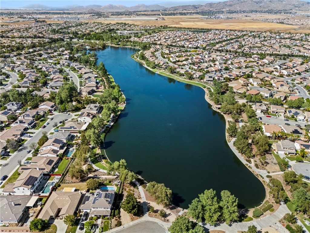 Imagine being able to walk to the Lake every day! Experience Resort-Style Living in the highly sought-after Heritage Lake Community in the growing City of Menifee. This beautifully maintained 4-Bedroom, 2.5-Bath Single Story Home offers 2,325 sq ft of Living Space on an expansive 8,000+ sq ft Lot, showcasing true pride of ownership inside and out. From the moment you walk in, you’ll notice the thoughtful Upgrades and Attention to Detail, including Ceramic Tile Flooring, a Built-In Surround Sound System (Inside and Out), and a Spacious Functional Layout perfect for Everyday Living and Entertaining. The heart of the home is the Oversized Kitchen featuring Abundant Storage, a Built-In Desk, and Double Oven...ideal for hosting gatherings or busy family life. The inviting Living Room is complete with a cozy Fireplace and custom Built-In Cabinetry. The well-designed floor plan offers privacy with the large Primary Suite situated on one side of the home...featuring 2 Separate Walk-In Closets, Dual Sinks, and a separate Soaking Tub and Shower. On the opposite side, you’ll find 3 Generously-Sized Secondary Bedrooms, including 1 equipped with a Queen Murphy Bed and Built-In Bookcase...perfect for guests or a home office. Step outside to your Private Backyard Retreat, complete with Alumawood Patio Cover, Gas Firepit, Block Wall Fencing, and Dual Wrought-Iron Side Gates...ideal for both Relaxing and Entertaining. Highlights include a Whole-House Water Treatment System, a NEWER Water Heater and Double Garages...a Standard 2-Car and a Separate 1-Car ideal for Storage, a Gym or Flex Space. Living in Heritage Lake means enjoying a true Resort Lifestyle centered around a Private 25-Acre Lake and Clubhouse, with amenities including 2 Jr. Olympic-Sized Pools, a Splash Park, Playgrounds, Scenic Walking Trails with Fitness Stations, Paddle Boating, Catch-and-Release Fishing, and a full calendar of Community Events year-round. Priced to sell and ready for its next owner...this one won’t last long! Schedule your private showing today.