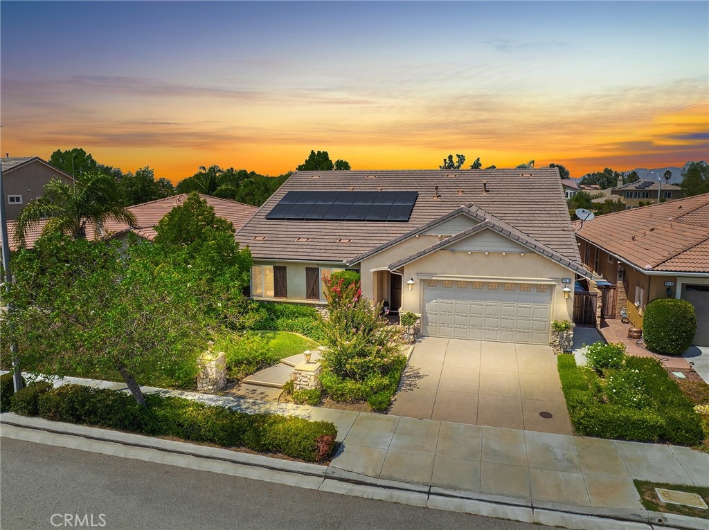 Discover this stunning formal model home nestled in the prestigious Heritage Lakes community of Menifee, where luxury meets comfort in every detail. This exquisite single-story residence boasts 3 spacious bedrooms plus a versatile den, thoughtfully designed with over 2,300 square feet of meticulously planned living space. The intelligent floor plan strategically positions the secondary bedrooms and master suite at opposite ends of the home, ensuring optimal privacy and tranquility for all occupants. The impressive 3-car tandem garage provides abundant storage and parking, while the interior showcases elegant engineered hardwood floors flowing seamlessly throughout the common areas, perfectly complemented by brand new plush carpeting in all bedrooms. The heart of the home features a magnificent family room anchored by a stunning fireplace flanked by beautiful built-in bookshelves on both sides, creating an atmosphere of sophistication and warmth. Premium plantation shutters grace every window, offering both style and privacy, while integrated speakers throughout the home provide the perfect soundtrack for daily living and entertaining. The exterior commands attention with beautiful curb appeal that reflects the pride of ownership evident in every corner of this immaculate property. Step into the backyard oasis where beautifully landscaped grounds create a peaceful retreat perfect for relaxation and outdoor gatherings. Comfort is assured year-round with a brand new compressor and evaporator unit featuring dual zone HVAC control, allowing personalized climate management throughout the home, while leased solar panels provide energy-efficient living and reduced utility costs. This exceptional property represents the perfect blend of elegance, functionality, and modern convenience in one of Menifee's most sought-after neighborhoods, where residents enjoy exclusive access to Heritage Lakes' outstanding amenities including a clubhouse, two Jr. Olympic-sized swimming pools, a splash park, a wading pool, and multiple tot-lots for family recreation. The community also provides paddleboats for lake access, catch-and-release fishing opportunities, fitness trails equipped with exercise stations, and engaging community events that foster a vibrant neighborhood lifestyle.