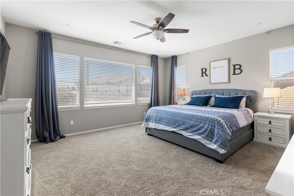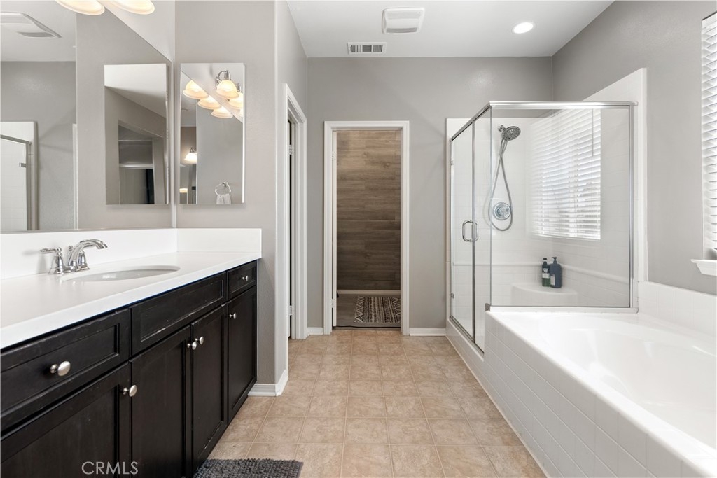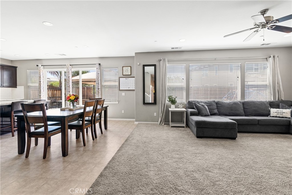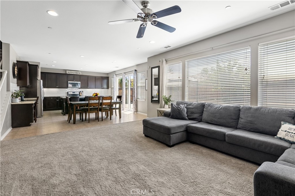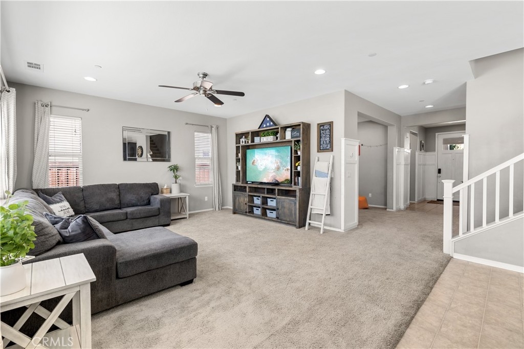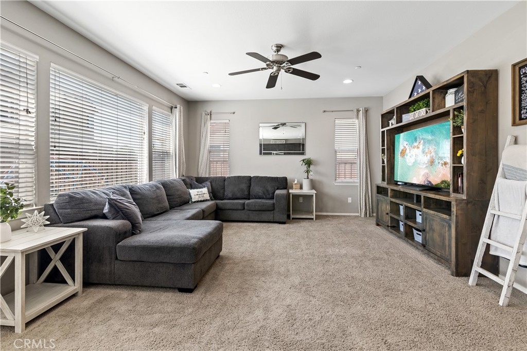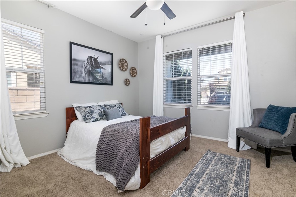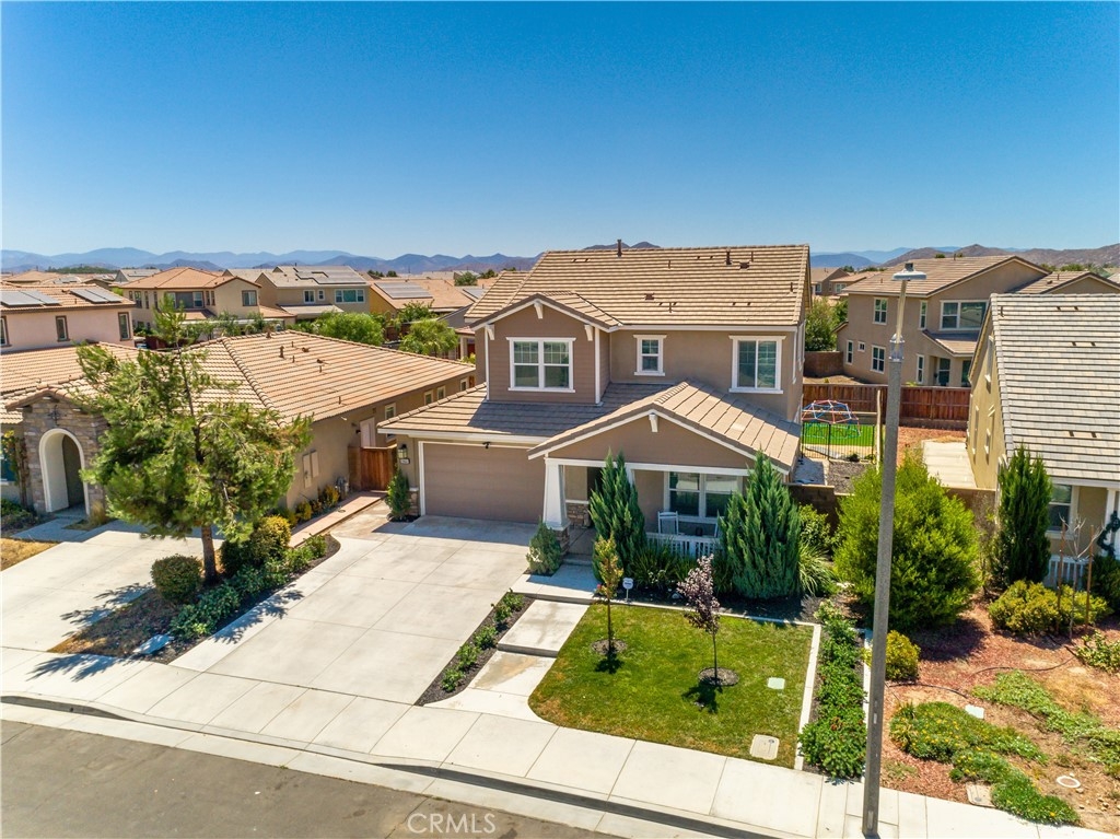 Welcome Home! This Beautiful 4-Bed/3-Bath comes with 2,520 Sq. Ft. of living space and is nestled in the highly sought-after community of Heritage Lake. As you step inside, you will discover an open and airy floor plan, with generous living spaces. The heart of this home is the Great Room which includes the kitchen, dining and living room. Large oversized windows and slider bring in lots of natural sunlight into these areas. The kitchen has plenty of cabinets, ample counter space, a coffee bar and large kitchen island. The layout is perfect for entertaining guests or spending quality time with your loved ones. There is one bedroom downstairs along with a bonus room which can be used as an office, playroom, school room or maybe just a quiet place to relax. When you are ready, escape upstairs to your private oasis with an expansive master bedroom, complete with two walk-in closets. One of the master walk-in closets has been converted into an office, but can easily be converted back if needed. The en-suite bathroom features two separate sink areas, a large relaxing soaking tub and a walk-in glass shower. The upstairs area also includes two bedrooms with a jack & jill bathroom and the laundry room. As you make your way outside, the backyard offers a peaceful retreat, ideal for enjoying morning coffee or hosting summer barbecues. It's the perfect space for kids to play or for gardening enthusiasts to indulge their green thumb. Upgrades of this home include insulated interior walls, custom entry wall design, granite counter tops, stainless steel appliances and subway tiles in the kitchen, tank-less water heather, alarm system, water softer, large concrete patio, fenced dog run, fruit trees and turf in the backyard. This home is located in the community of HERITAGE LAKE. Amenities of Heritage Lake include a 25-Acre Lake that allows Paddle Boating and Catch & Release Fishing for Residents Only. Heritage Lake has several Large Parks, Playgrounds and Sports Courts for Baseball, Basketball, Pickleball, Tennis & Soccer! There are Walking Trails throughout the community and around the lake as well. Heritage Lake has a Community Clubhouse, (2) Community Pools and Splash Pad for young children. Heritage Lake is just minutes to the 215 Fwy with nearby Shopping Centers. Heritage Lake is serene, surrounded by beautiful mountain landscapes.