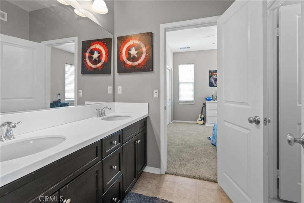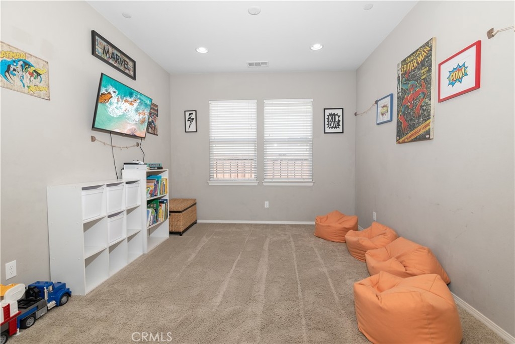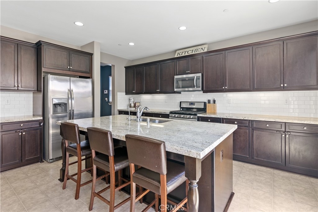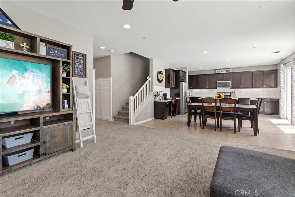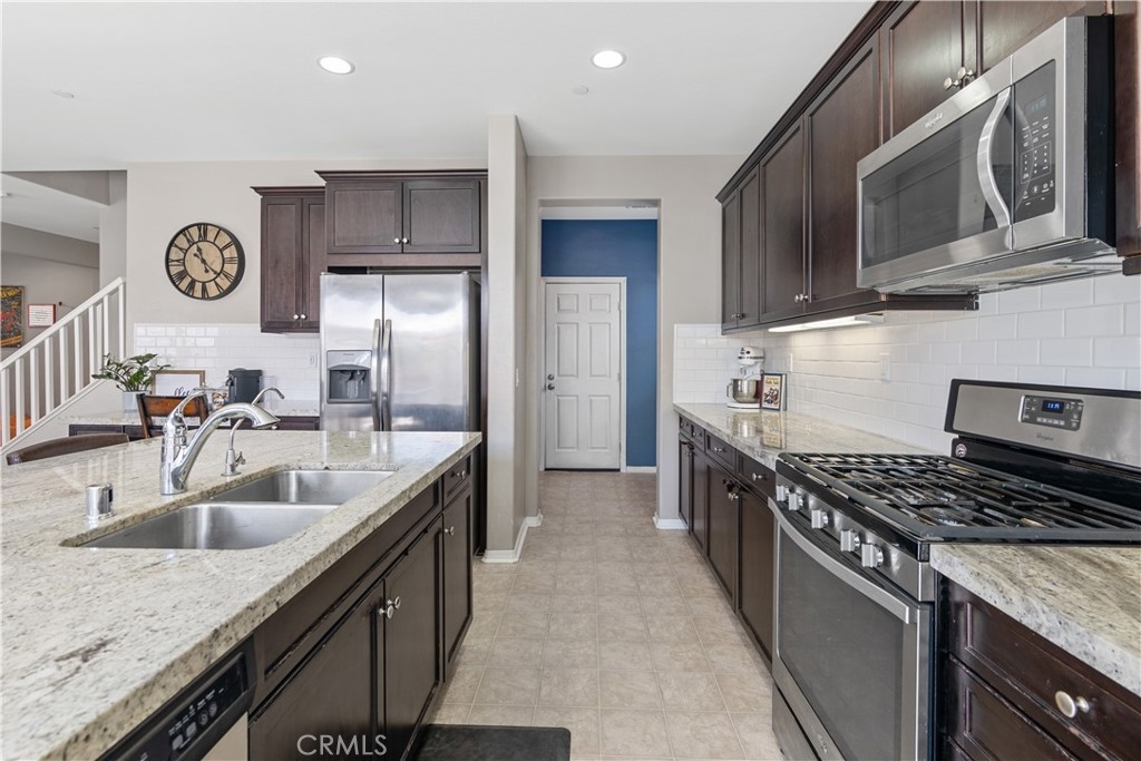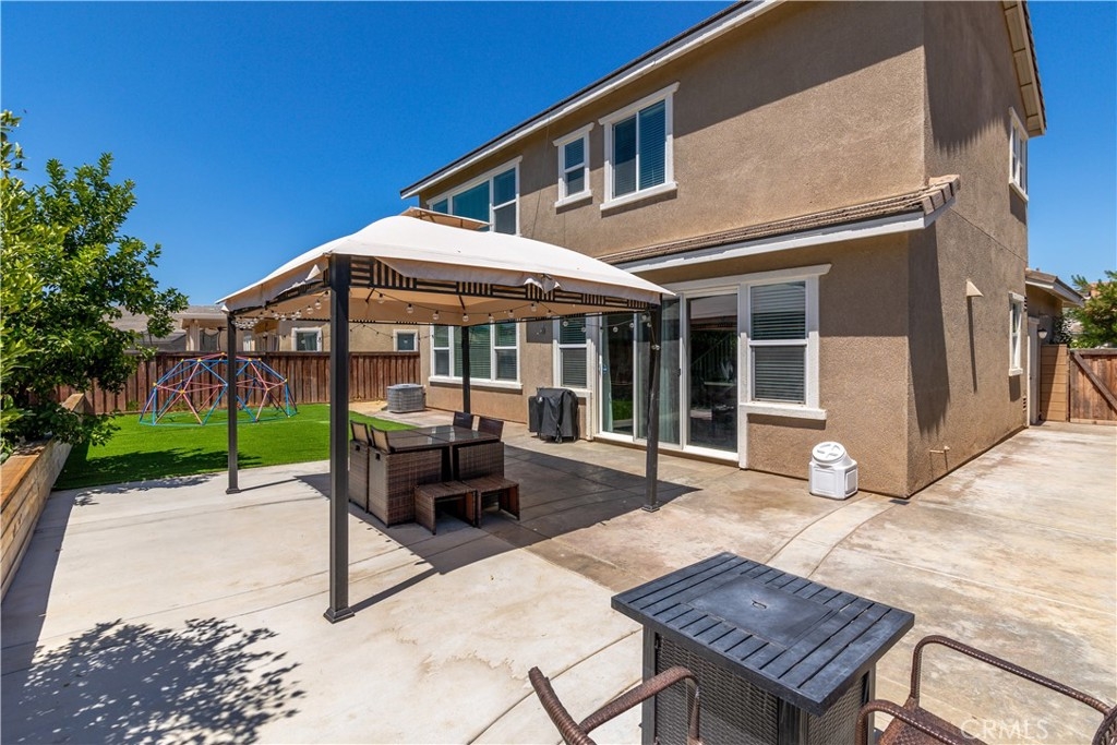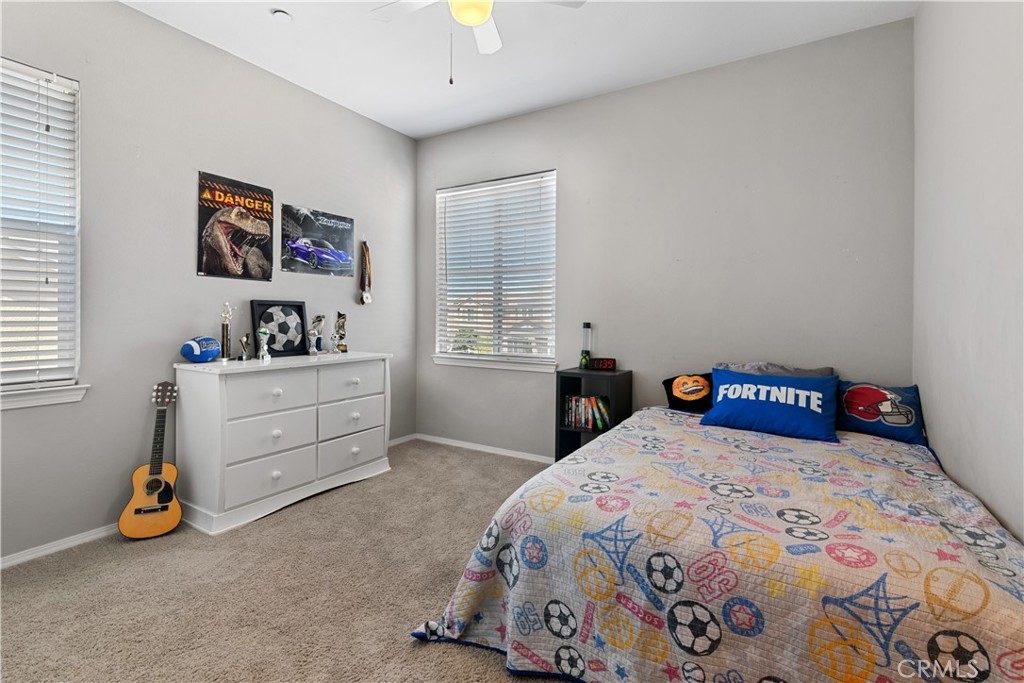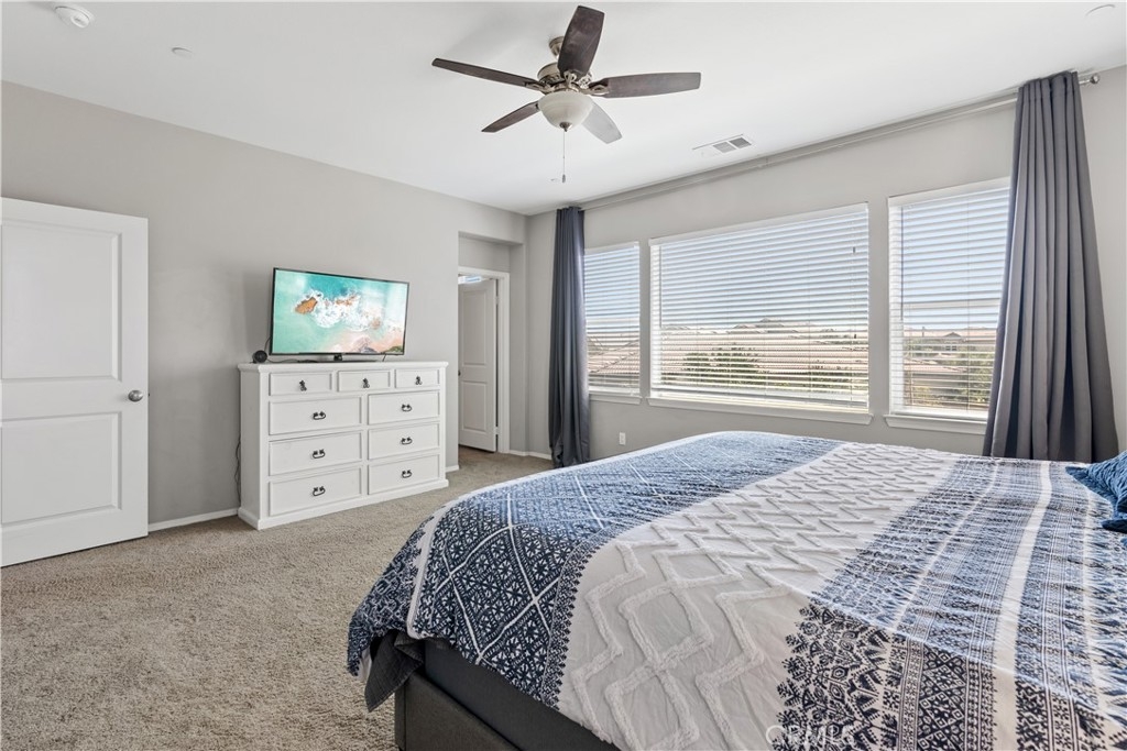Welcome Home! This Beautiful 4-Bed/3-Bath comes with 2,520 Sq. Ft. of living space and is nestled in the highly sought-after community of Heritage Lake. As you step inside, you will discover an open and airy floor plan, with generous living spaces. The heart of this home is the Great Room which includes the kitchen, dining and living room. Large oversized windows and slider bring in lots of natural sunlight into these areas. The kitchen has plenty of cabinets, ample counter space, a coffee bar and large kitchen island. The layout is perfect for entertaining guests or spending quality time with your loved ones. There is one bedroom downstairs along with a bonus room which can be used as an office, playroom, school room or maybe just a quiet place to relax. When you are ready, escape upstairs to your private oasis with an expansive master bedroom, complete with two walk-in closets. One of the master walk-in closets has been converted into an office, but can easily be converted back if needed. The en-suite bathroom features two separate sink areas, a large relaxing soaking tub and a walk-in glass shower. The upstairs area also includes two bedrooms with a jack & jill bathroom and the laundry room. As you make your way outside, the backyard offers a peaceful retreat, ideal for enjoying morning coffee or hosting summer barbecues. It's the perfect space for kids to play or for gardening enthusiasts to indulge their green thumb. Upgrades of this home include insulated interior walls, custom entry wall design, granite counter tops, stainless steel appliances and subway tiles in the kitchen, tank-less water heather, alarm system, water softer, large concrete patio, fenced dog run, fruit trees and turf in the backyard. This home is located in the community of HERITAGE LAKE. Amenities of Heritage Lake include a 25-Acre Lake that allows Paddle Boating and Catch & Release Fishing for Residents Only. Heritage Lake has several Large Parks, Playgrounds and Sports Courts for Baseball, Basketball, Pickleball, Tennis & Soccer! There are Walking Trails throughout the community and around the lake as well. Heritage Lake has a Community Clubhouse, (2) Community Pools and Splash Pad for young children. Heritage Lake is just minutes to the 215 Fwy with nearby Shopping Centers. Heritage Lake is serene, surrounded by beautiful mountain landscapes.